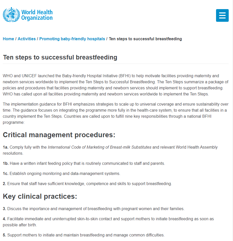 - Ten steps to successful breastfeeding (revised 2018)