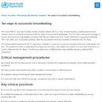 - WHO and UNICEF launched the Baby-friendly Hospital Initiative (BFHI) to help motivate facilities providing maternity and newborn services worldwide to implement the Ten Steps to Successful Breastfeeding. The Ten Steps summarize a package of policies and procedures that facilities providing maternity and newborn services should implement to support breastfeeding. WHO has called upon all facilities providing maternity and newborn services worldwide to implement the Ten Steps.