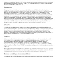 Dans cette déclaration de principe, l’Academy of Breastfeeding Medicine (ABM), une organisation internationale de spécialistes de la médecine de l’allaitement, fournit des recommandations détaillées destinées aux professionnels de santé afin qu’ils puissent informer leurs patientes sur le partage informel de lait humain. | In this Position Statement, the Academy of Breastfeeding Medicine (ABM), a worldwide organization of breastfeeding medicine specialists, provides detailed guidance for healthcare providers so they can educate their patients about informal milk sharing.