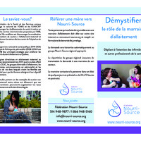 - Ce dépliant explique aux professionnel(les) de la santé le rôle des marraines d'allaitement Nourri-Source, ses limites, sa formation et la philosophie du réseau.
