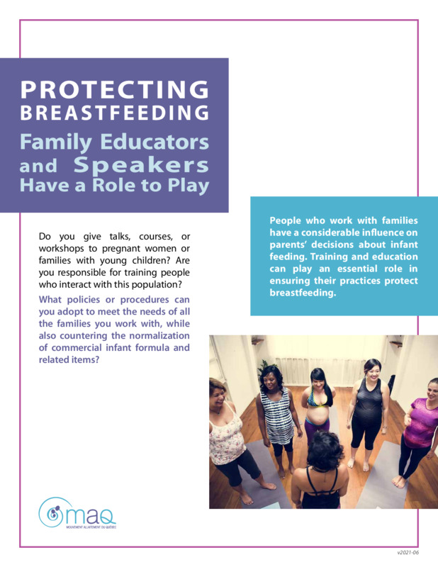 Protégeons l’allaitement: les interactions avec les familles ont un rôle à jouer | Protecting Breastfeeding: Family Educators and Speakers Have a Role to Play