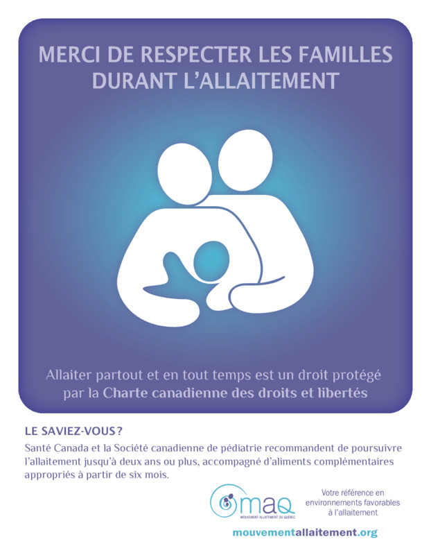 - Cette affiche vise à protéger les femmes en éduquant les personnes qui partagent l’espace public où elles sont susceptibles d’allaiter. NE PAS UTILISER AU QUÉBEC