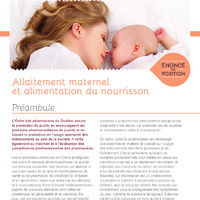 - Position de l'Ordre professionnel des pharmaciens du Québec sur l'allaitement maternel et l'alimentation du nourrisson.