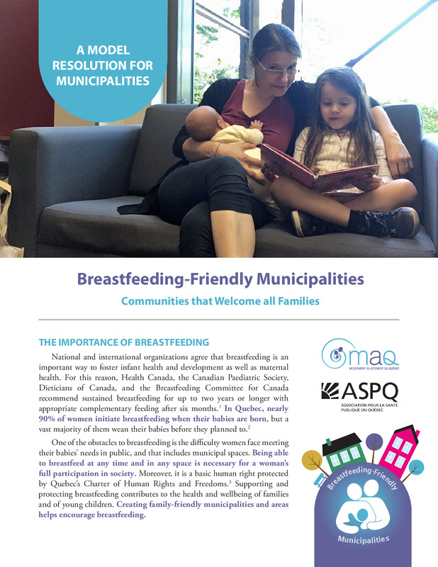 Fait partie de Modèle de résolution pour les municipalités favorables à l'allaitement