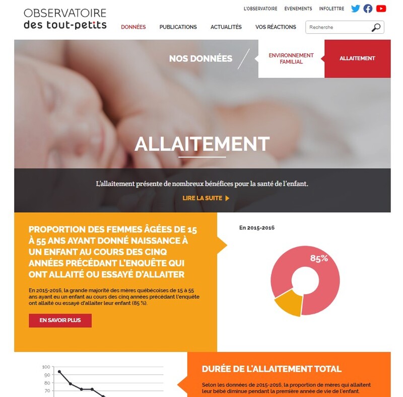 Allaitement: présentation dynamique des données statistiques 2015-2016 au Québec