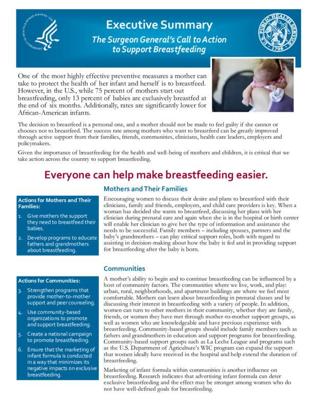 The Surgeon General’s Call to Action to Support Breastfeeding : Executive Summary