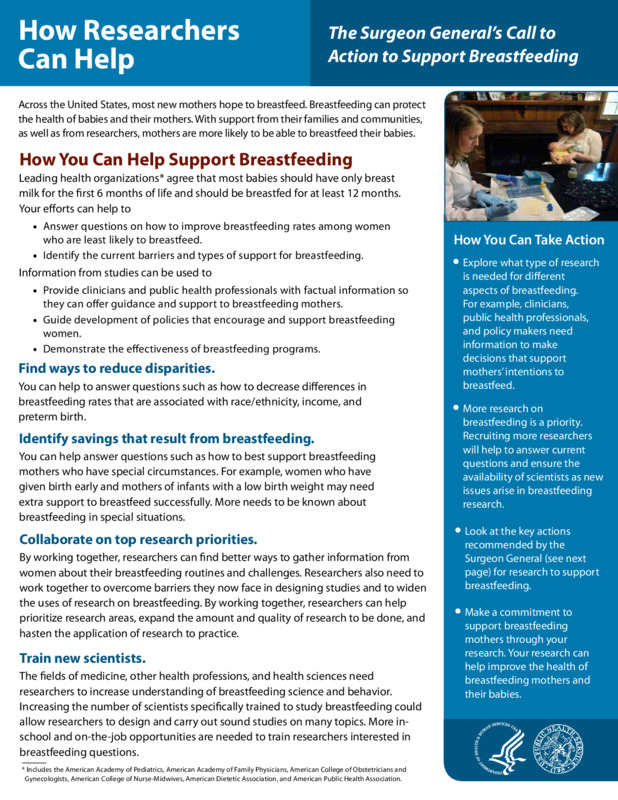 The Surgeon General’s Call to Action to Support Breastfeeding : How Researchers Can Help