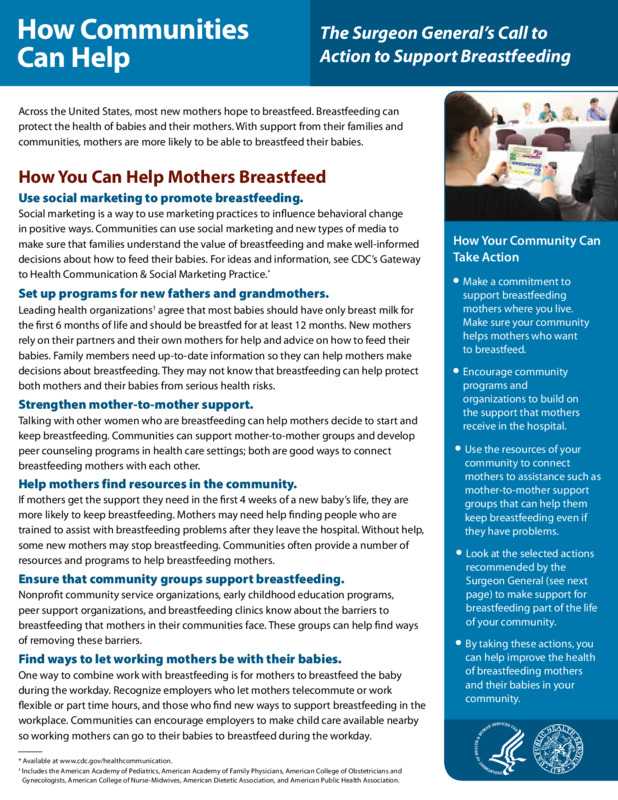 The Surgeon General’s Call to Action to Support Breastfeeding : How Communities Can Help