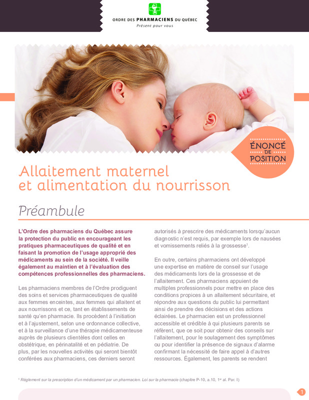 Énoncé de position: allaitement maternel et alimentation du nourrisson