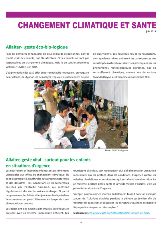 Allaitement, changements climatiques et situations d'urgence