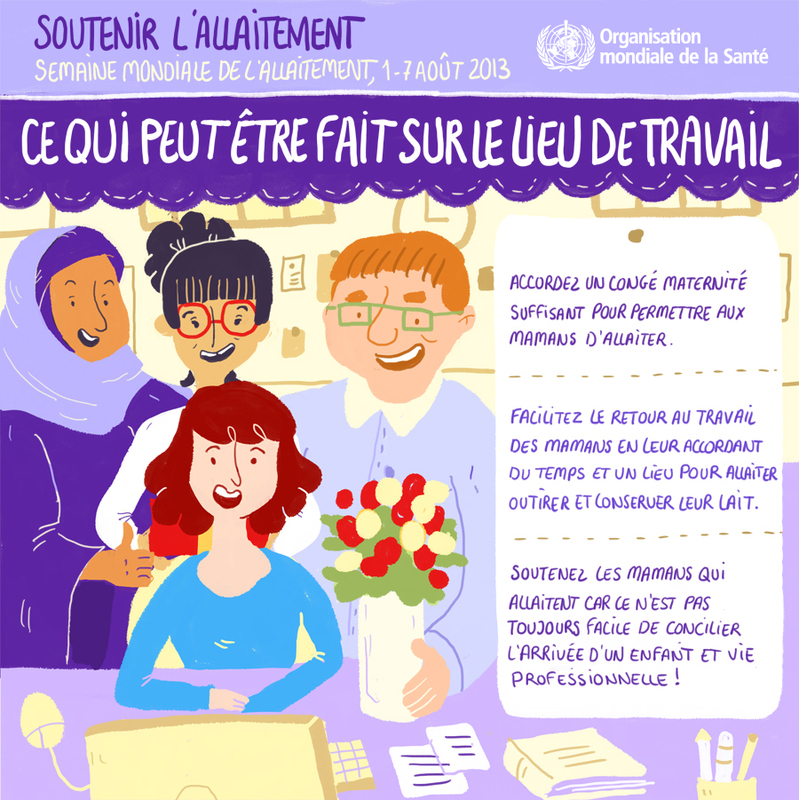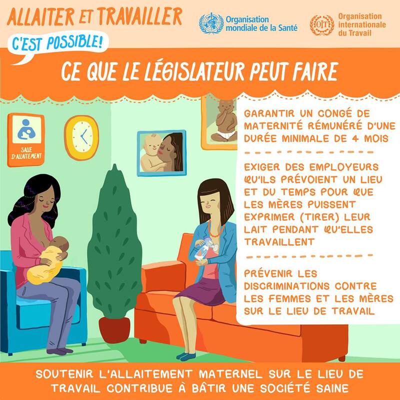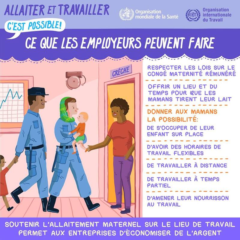 Breastfeeding support in the workplace : a global guide for employersCe guide de l'UNICEF sur le soutien à l'allaitement en milieu de travail met en évidence l'importance des politiques familiales favorables pour soutenir l'allaitement. Le document propose des recommandations pratiques pour les employeurs, telles que l'aménagement de salles d'allaitement et la mise en place de pauses d'allaitement rémunérées, afin de favoriser un environnement de travail qui soutient l'allaitement. L'objectif est de promouvoir des politiques qui permettent aux parents de concilier travail et famille, tout en améliorant la productivité et le bien-être des employés.